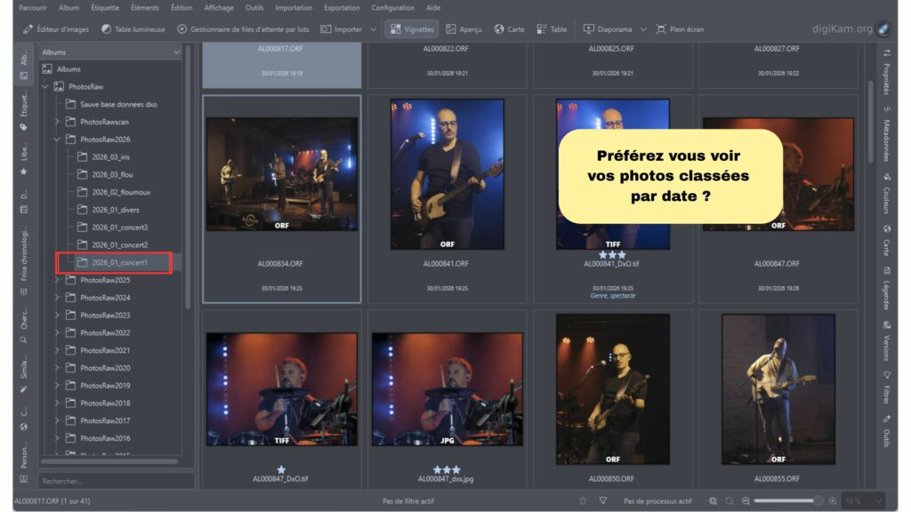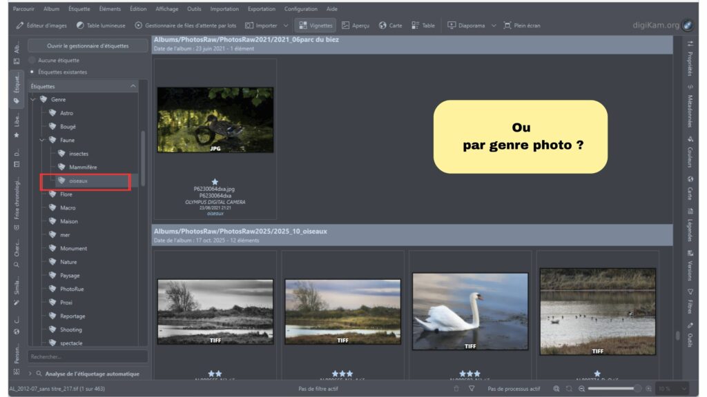 Avec le numérique, cette limite a presque disparu. Les cartes mémoire offrent une très grande capacité, et prendre une photo ne coûte rien. On peut donc multiplier les prises de vue, ce qui est souvent utile et bénéfique pour la créativité. C’est une liberté extraordinaire. Mais cette liberté a une conséquence directe : on se retrouve très vite avec un très grand nombre d’images à gérer.